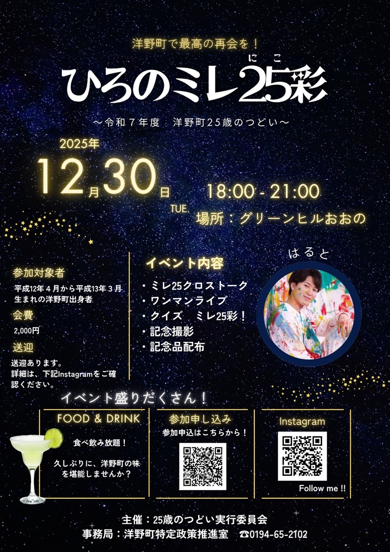 ひろのミレ25彩 ~令和7年度 洋野町25歳のつどい~ の開催に…