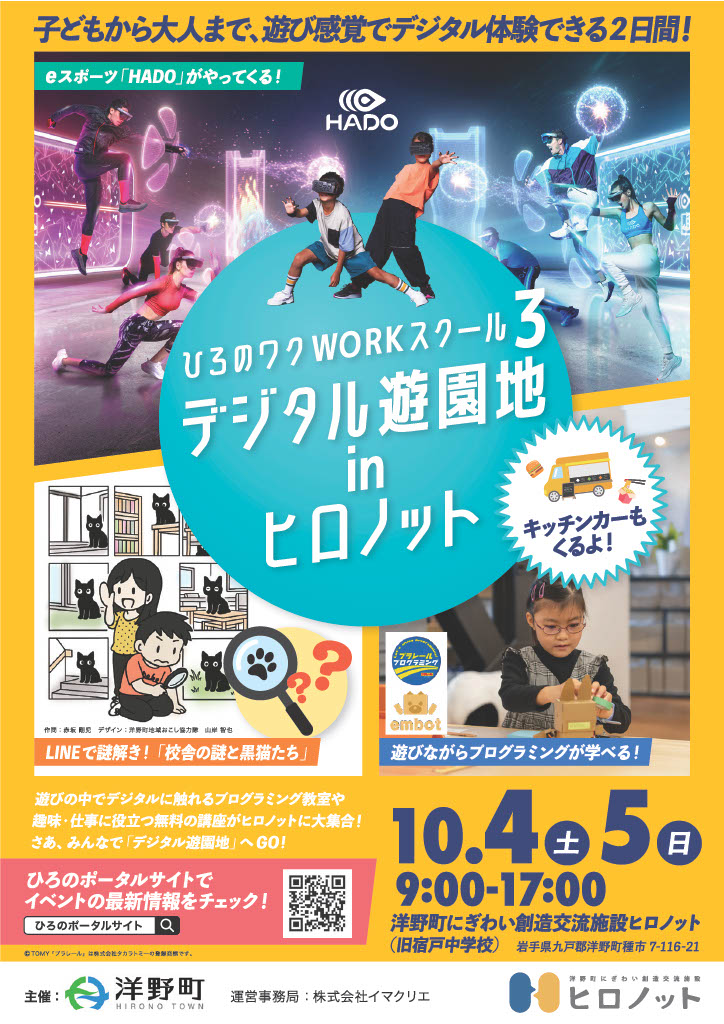 ホーム 洋野町の声 VOICES 洋野町の声 洋野町 国保種市病院 健康講演会を開催します 国保種市病院では毎月健康講演会を開催しています。 9月は青木歯科医院の青木一先生を講師に講演会を開催します。 どなたでも無料で参加できます。みなさまぜひご参加ください。 〇日時… 投稿日時:2025.09.24 続きを見る 事業者 アンテナ株式会社 こんにちは。10/4.5ヒロノットにて「デジタル遊園地inヒロノット」が開催されます!大人気eスポーツ「HADO」が昨年より更にパワーアップして帰ってきました!今年は朝から夕方まで終日遊べるのと、ミニ… 投稿日時:2025.09.24 続きを見る ユーザー やませ丸 今日は役場近くの公園「しおかぜパーク」のバスケットコートで3×3の大会が開かれていました。天気も良く、選手たちの好プレーに観客から声援が送られていました。こういうスポーツイベントがもっともっと増えれば… 投稿日時:2025.09.23 続きを見る 洋野町 洋野町特定政策推進室 中小企業・小規模事業者ワンストップ総合支援事業(岩手県よろず支援拠点)について 岩手県よろず支援拠点では、中小企業・小規模事業者の皆様が抱える経営課題(売上拡大、新商品開発、資金繰り、人材確保、IT活… 投稿日時:2025.09.17 続きを見る ユーザー 洋野のONIISAN 先週末はヒロノットで行われたイベント『モット あそぼっと』にお邪魔してきました!クラフトや本屋さん、ステージイベントに飲食店など校舎丸ごと使ったイベントで非常に楽しかったです♪大人だけでなく子どもも沢… 投稿日時:2025.09.16 続きを見る 事業者 アンテナ株式会社 明日はヒロノットで『モット あそぼっと』という素敵なイベントがあります!ステージ(DJ・ライブ)、クラフト出店、コーすけエアスライダー、ワークショップ、フード販売、プレーパーク(火起こし体験)ペットボ… 投稿日時:2025.09.12 続きを見る 事業者 モカメル 新商品「はちみつとレモンのあめっこ」を、本日発売しました🍋✨️ ひとつ口に含めば、爽やかなレモンの香りがパッと広がり、その後にまろやかな洋野町産はちみつの甘さがそっと包み込んでくれます。 気分をリフレ… 投稿日時:2025.09.06 続きを見る ユーザー やませ丸 今日のお昼は久々に「cafe Cocoyo」でランチ。 月替わりのランチメニューで気になったガパオライスを注文。もちろん「美味」なうえ、デザートとドリンクもセットでお得感あり。 また行きたいと思います… 投稿日時:2025.09.05 続きを見る ユーザー ぱんだ 月明かりの影響がない夜は、まだまだ「夏の天の川」が楽しめます。 投稿日時:2025.08.31 続きを見る 事業者 アンテナ株式会社 事業者様お打ち合わせで大野方面へ来ていました。大野の牧場はいつ訪れても雄大さを感じさせます。弊社事務所はヒロノットにありますが、何か理由をつけて毎日通いたいぐらいです。今度、用事が無くてもパソコン片手… 投稿日時:2025.08.29 続きを見る 事業者 cafe Cocoyo 8月17日(日)〜19日(火)のお祭り期間、Cocoyoにお立ち寄りいただいた皆さまありがとうございました😊 そして参加した皆さまお疲れさまでした! 今年もやはり雨が降りましたね☔️ 激しい雨でび… 投稿日時:2025.08.21 続きを見る 洋野町 国保種市病院 健康講演会を開催します 国保種市病院では毎月健康講演会を開催しています。 8月は当院の大入主任薬剤師を講師に「くすりの話」と題して講演します。 どなたでも無料で参加できます。みなさまぜひご参加ください… 投稿日時:2025.08.20 続きを見る 123>»