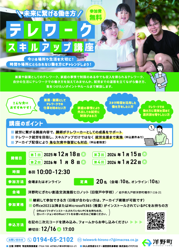 ひろのワークスタイル-洋野での働きかた-(地元企業PR動画)のご…