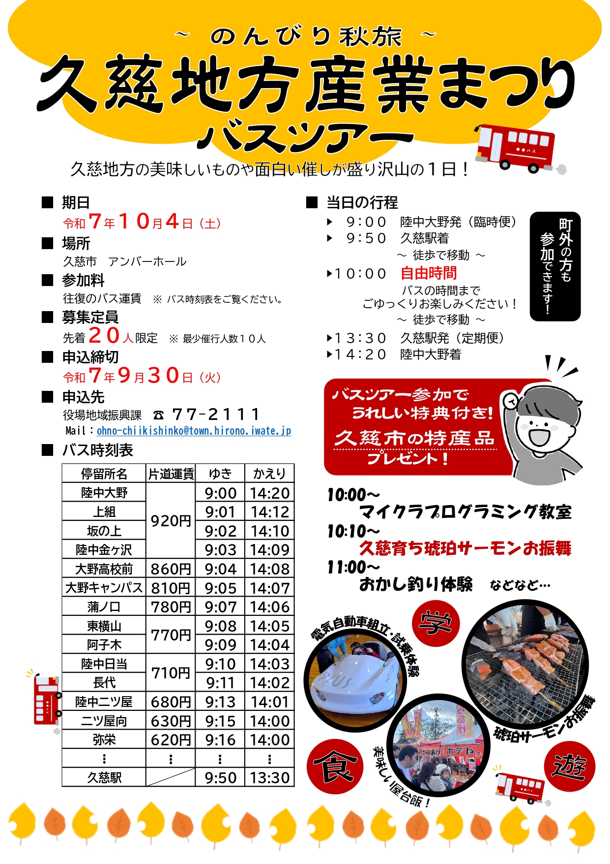 10月4日(土)に久慈市アンバーホールで開催される久慈地方産業まつりに路線バスで行くツアーです。