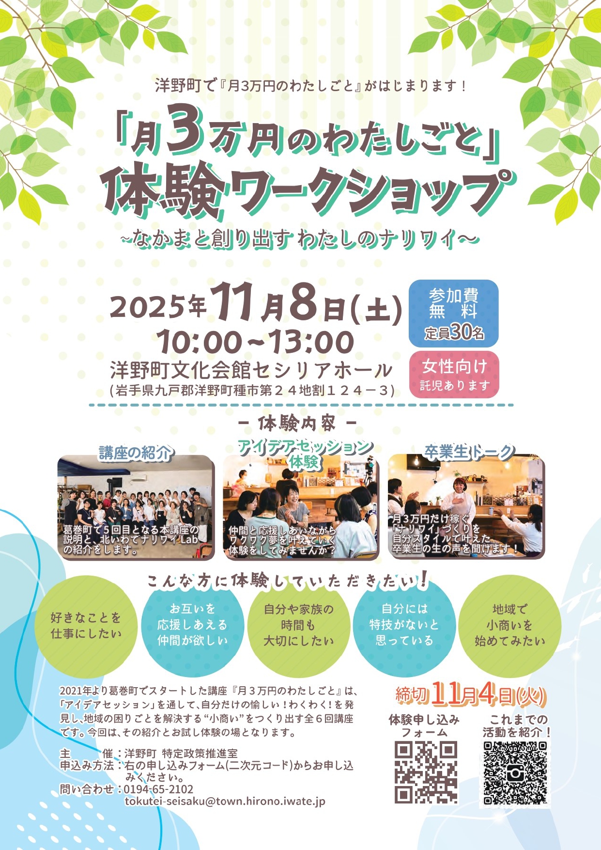 「月3万円のわたしごと」体験ワークショップ チラシ[PDF:507KB]