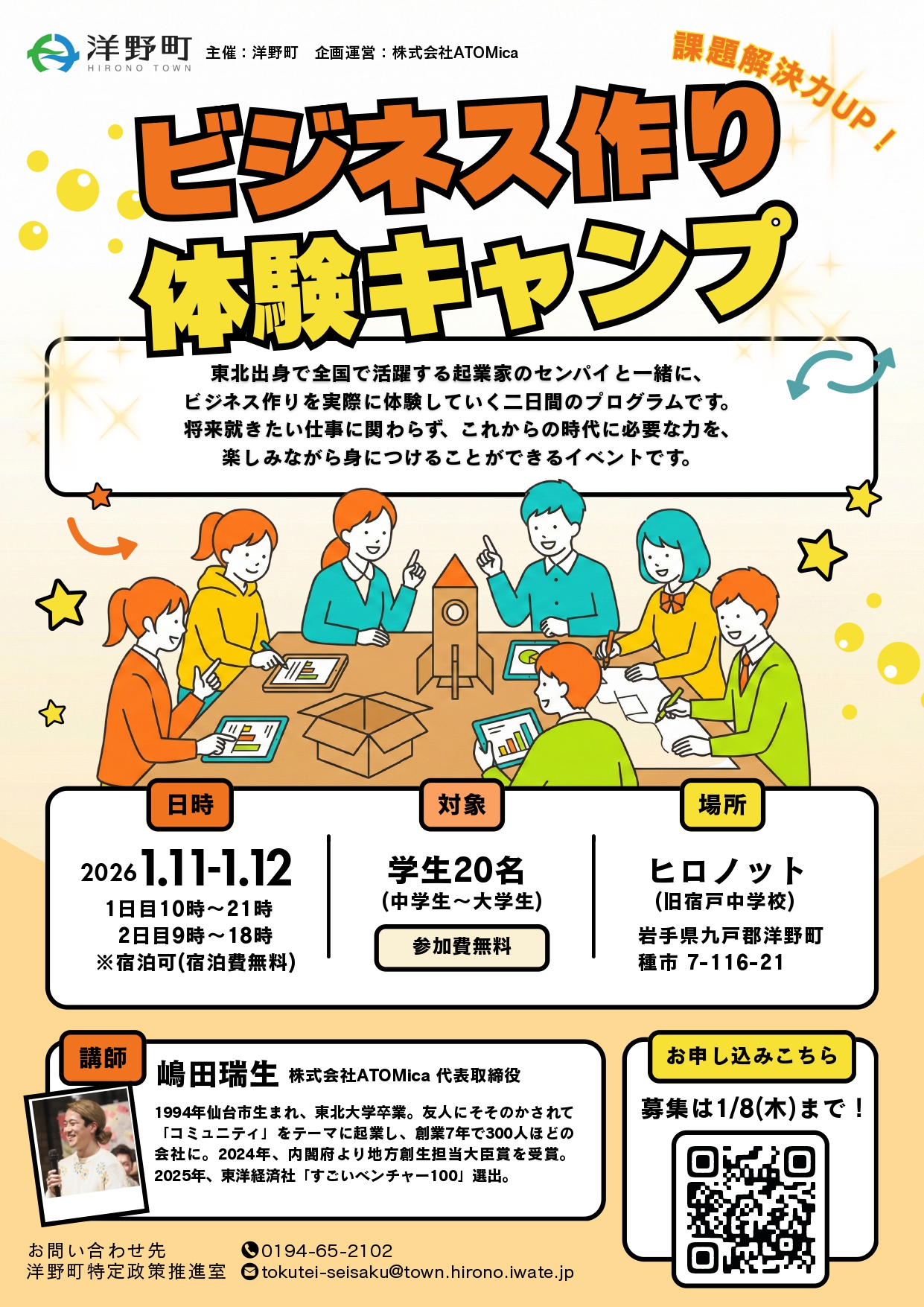 【参加者募集/中・高・大学生向け】「ビジネス作り体験キャンプ」 開催!
