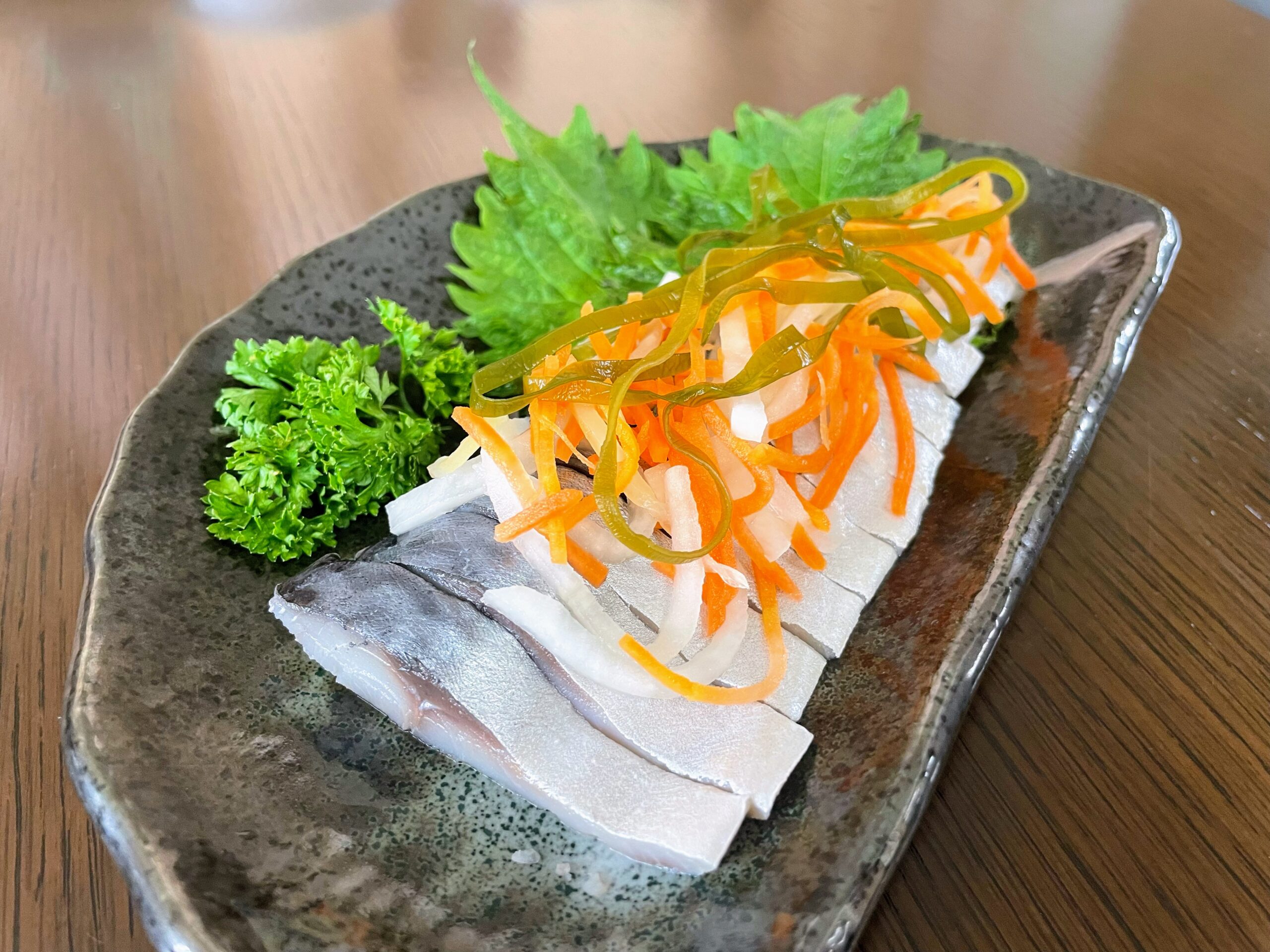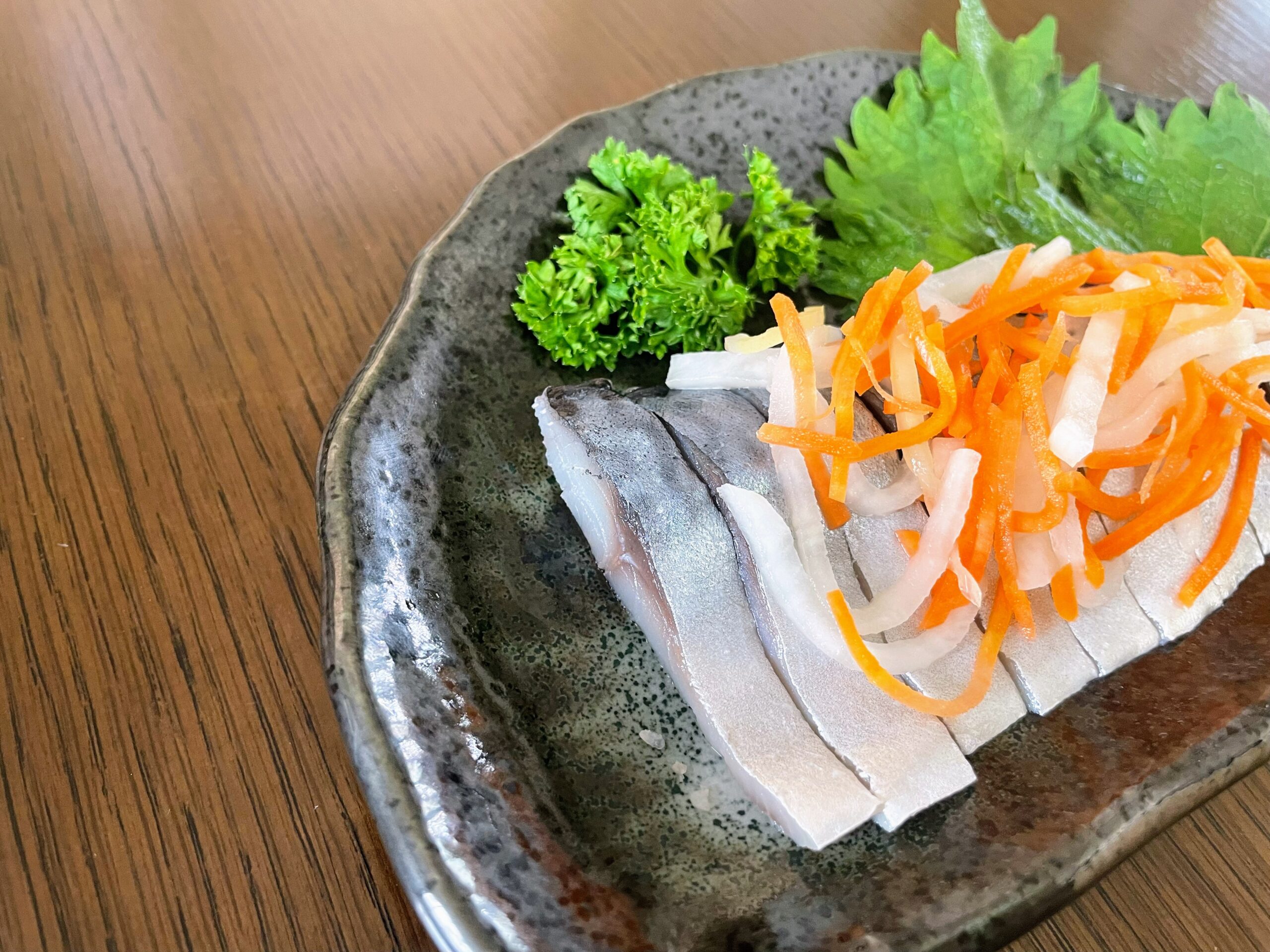 しめ鯖はそのままでも十分美味しいですが、薬味との相性も抜群です。おすすめは「おろし生姜」「青じそ」「みょうが」など。少しワサビを添えると、味にキレが出て食欲が増します。