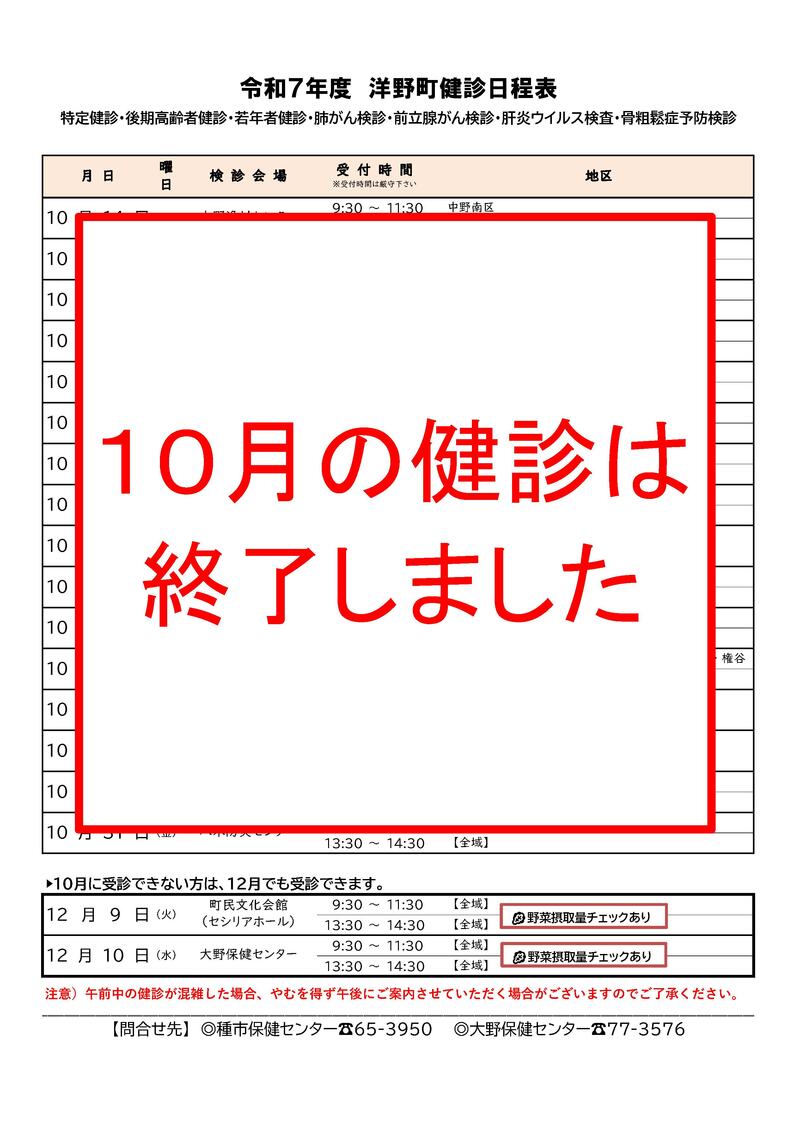 令和7年度 特定健診・若年者健診・後期高齢者健診・肺がん検診等の…
