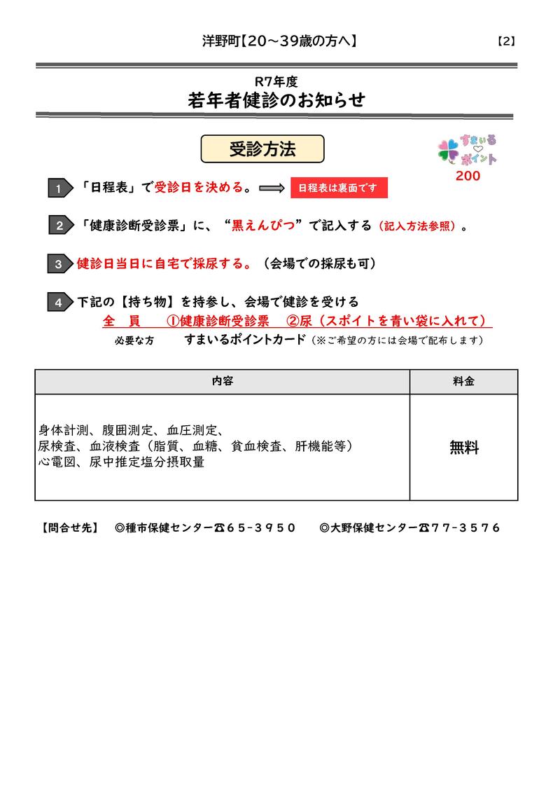 ②R7 【20-39歳】若年者健診のご案内[PDF:271KB]