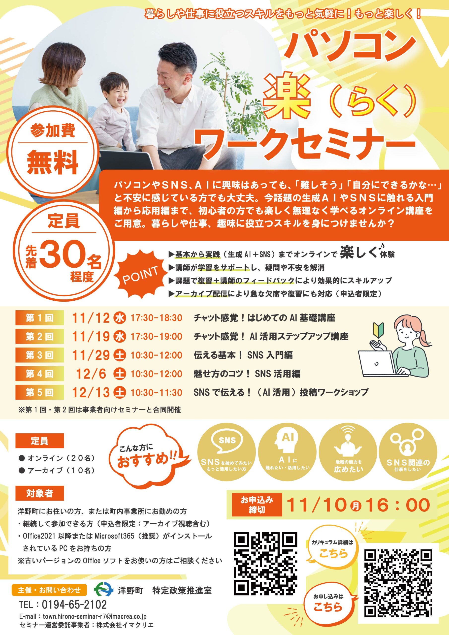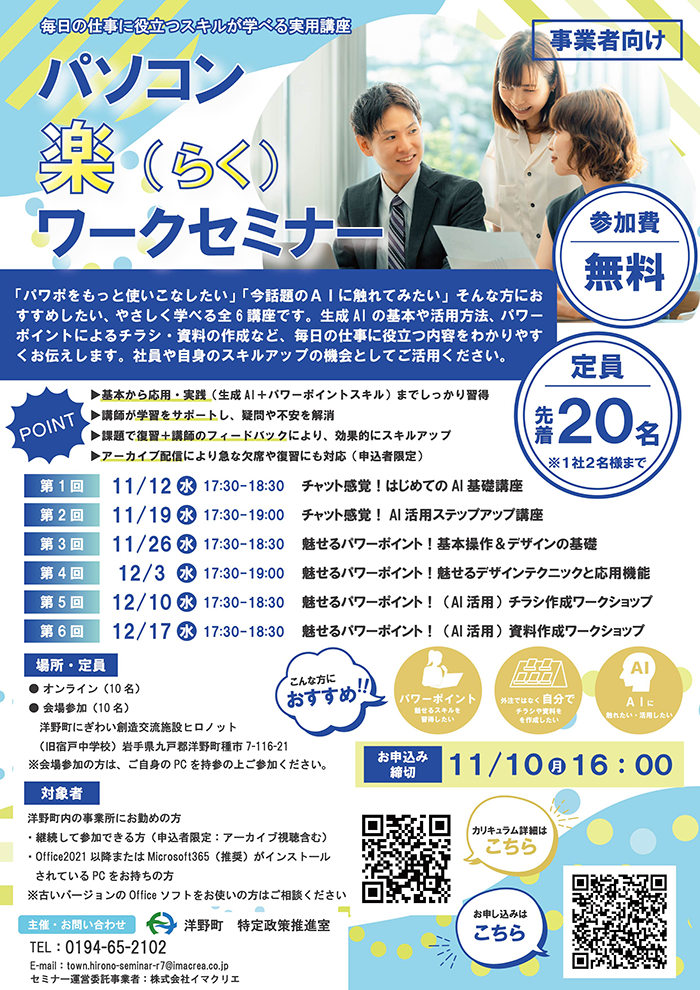 【10/3(金)申込受付開始】【洋野町主催】 事業者向け 『パソ…